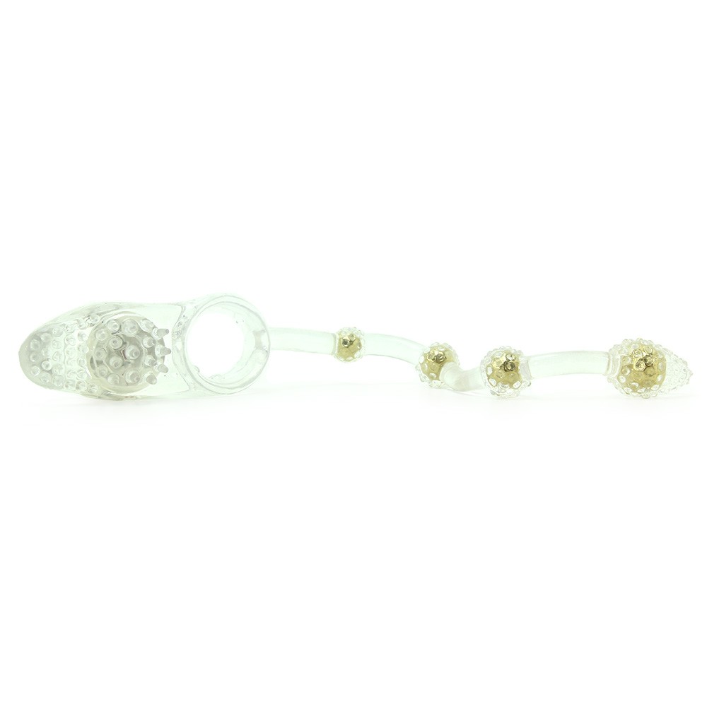К кольцу крепится анальная цепочка из 4 металлических шариков в мягкой оболочке с объемными точками.