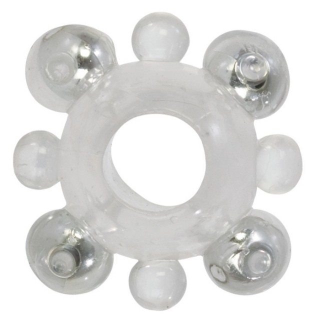 Широкое кольцо с четыремя металлическими бусинами для более выраженной стимуляции. Кольцо хорошо тянется.