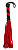 Сама плеть выполнена из замши, ручка украшена черно-красным спиральным узором. На конце имеется петелька черного цвета, выполненная из кожзама.