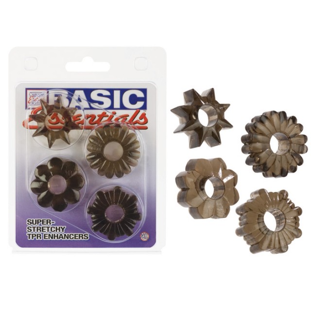 Набор из четырех супер-тянущихся колец из дымчатого цвета термопластичной резины.