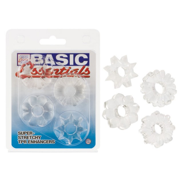Набор из четырех супер-тянущихся колец прозрачного цвета из термопластичной резины. Кольца без запаха, материал колец приятен на ощупь.