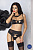 Игривая тонкая сеточка в горошек - основная ткань комплекта, а его роскошное украшение - это плотная непрозрачная вставка в передней части, украшенная оригинальным переливающимся цветочным рисунком.