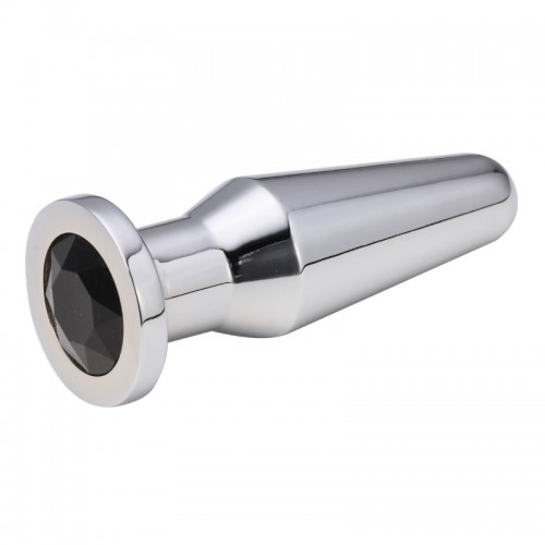 Стальная пробка серебряного цвета с чёрным кристаллом в форме вытянутого конуса подойдет для любителей стильных аксессуаров из металла.
