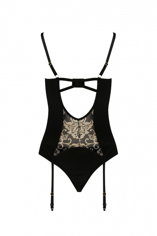 Имеет необычную утонченную форму, с подтяжками для чулок.