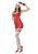 Платье выполнено в ярком красном цвете с пажами, украшена кружевным узором.