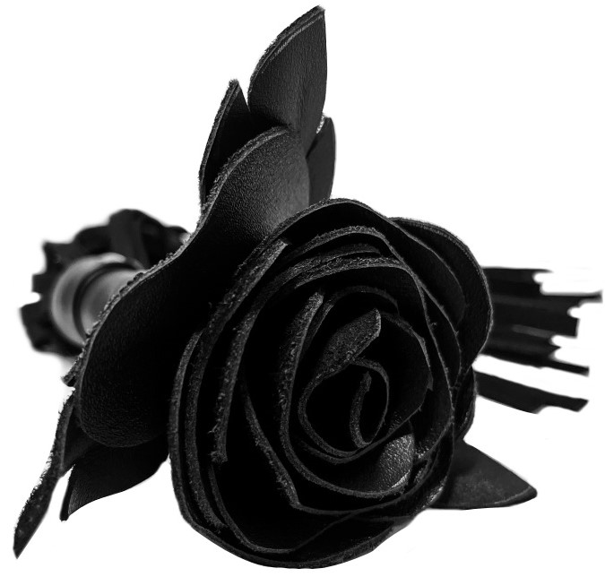 Цветок полностью выполнен из натуральной лаковой кожи, листочки розы и рукоятка выполнены из мягкой натуральной кожи, а хвосты плети - из натуральной мягкой замши.