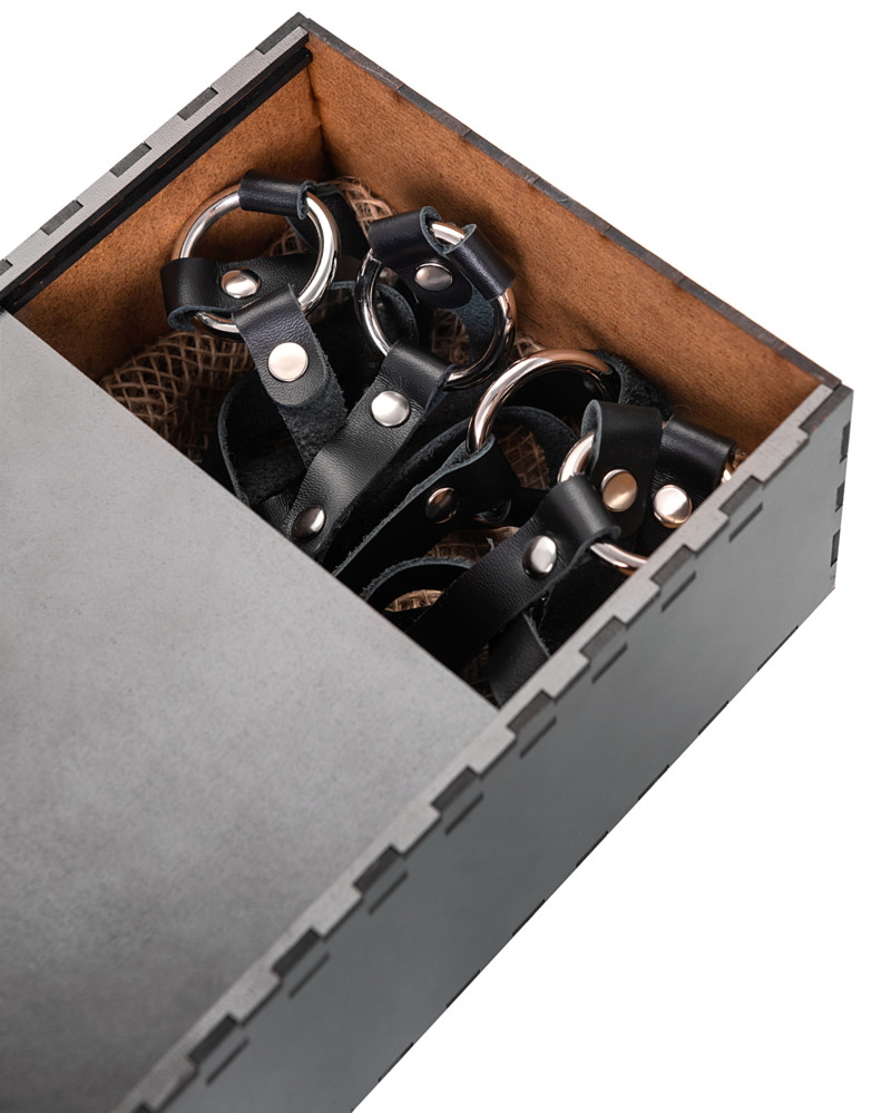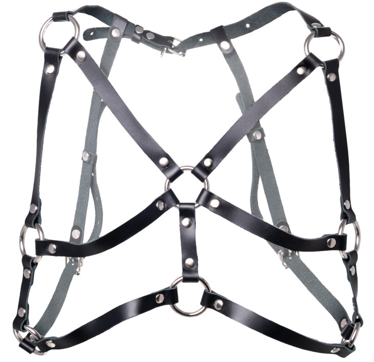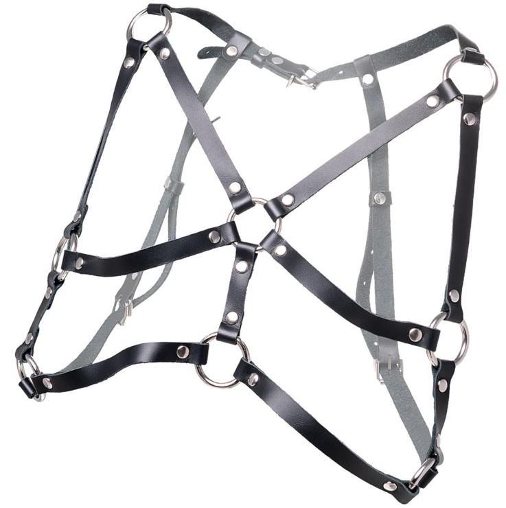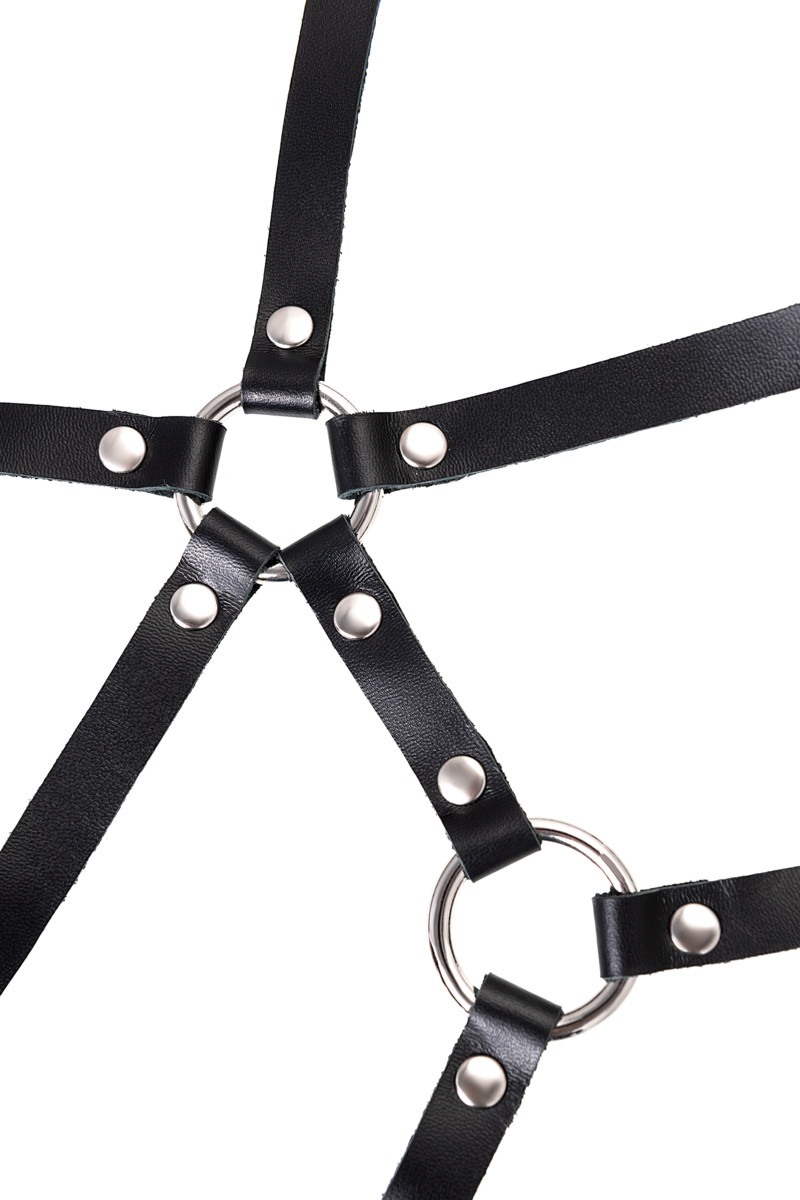 Портупея фиксируется сзади, в области бюста. Хорошая посадка по фигуре обеспечивается благодаря регулируемым ремешкам. Они выполнены из экологичной натуральной кожи.