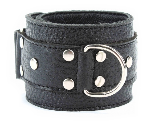 Стильные и дерзкие оковы на липучке, выполненные из натуральной мягкой кожи черного цвета.