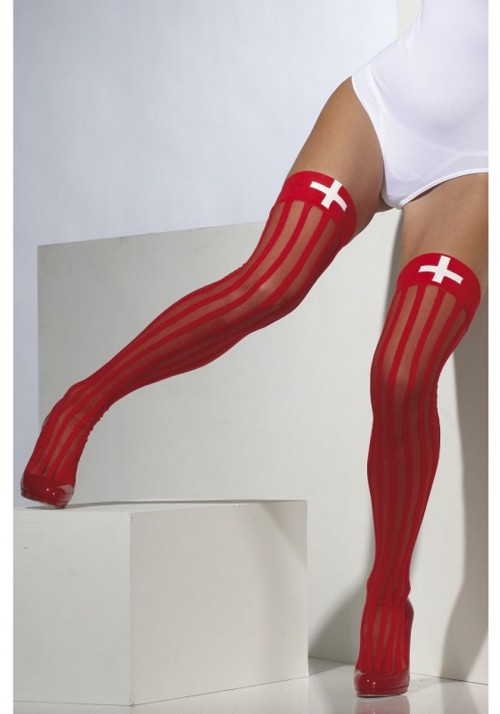 Страстные красные чулочки с медицинской эмблемой