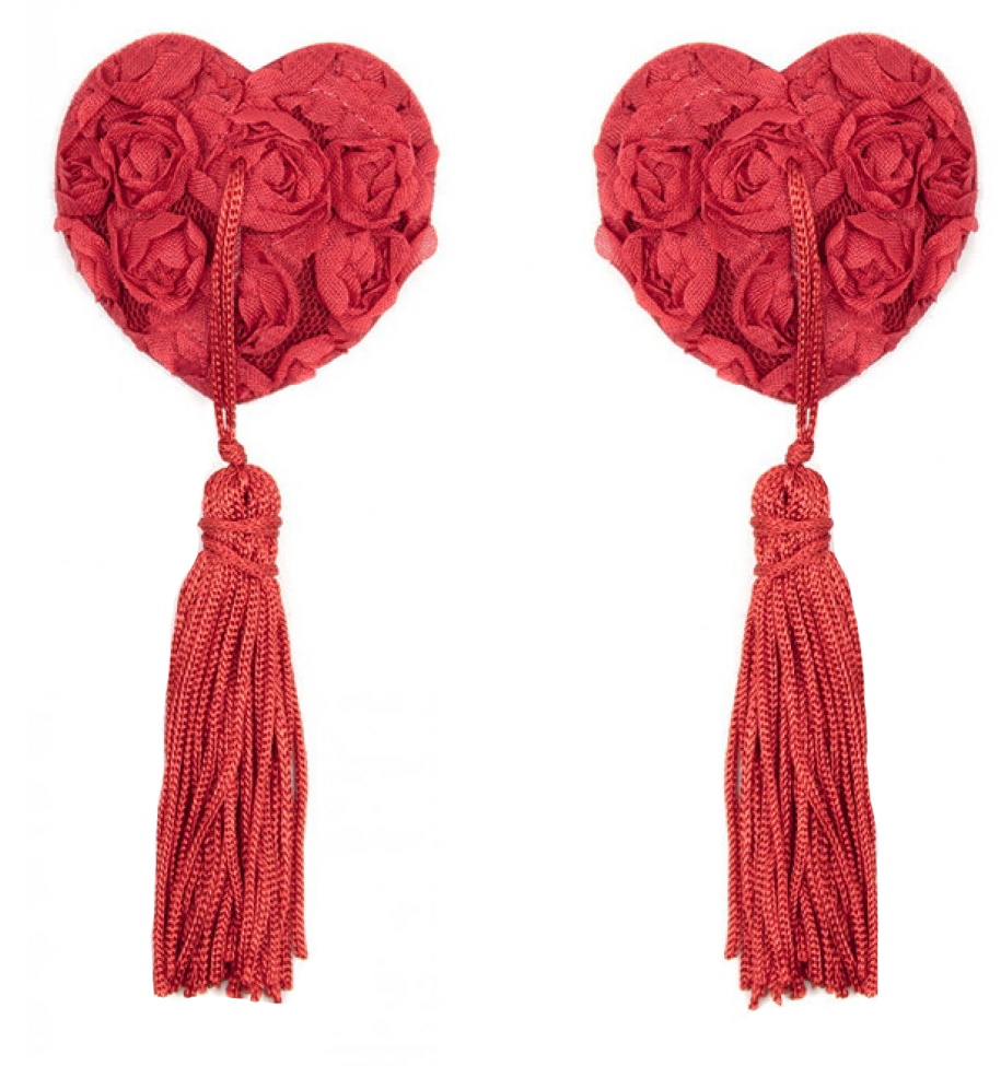 Красные пэстисы в форме сердца, украшенные маленькими розочками, подойдут для придания женственности и игривости!