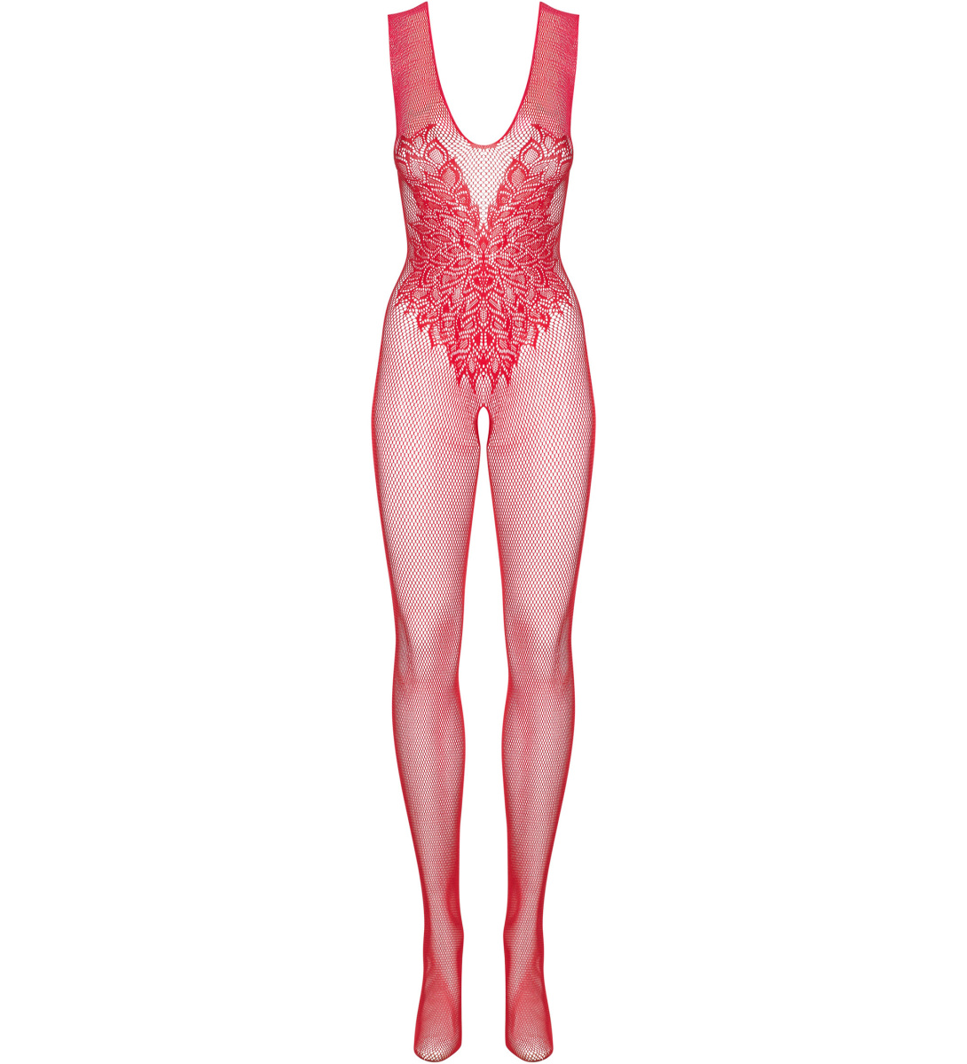 соблазнительный красный кэтсьюит в мелкую сеточку с пикантным вырезом!