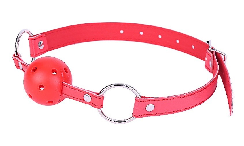 Кляп-шар имеет универсальный размер, который удобно регулируется при помощи пряжки, а специальные дырочки в шаре облегчают дыхание и обеспечивают полный комфорт.