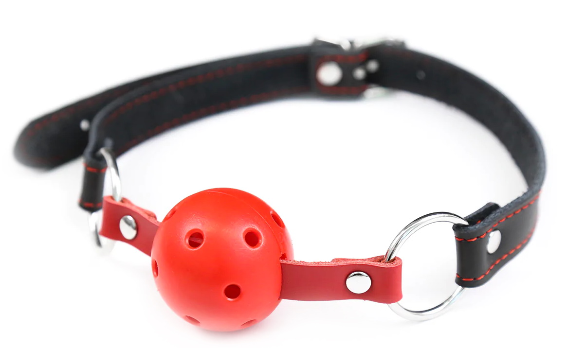 Кляп-шар имеет универсальный размер, который удобно регулируется при помощи пряжки, а специальные дырочки в шаре облегчают дыхание и обеспечивают полный комфорт.