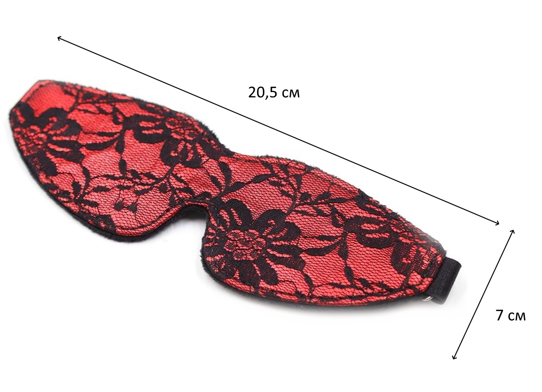 Размер: длина маски 20,5 см, ширина 3 - 7 см; по обхвату регулируется при помощи лены с металлической пряжкой