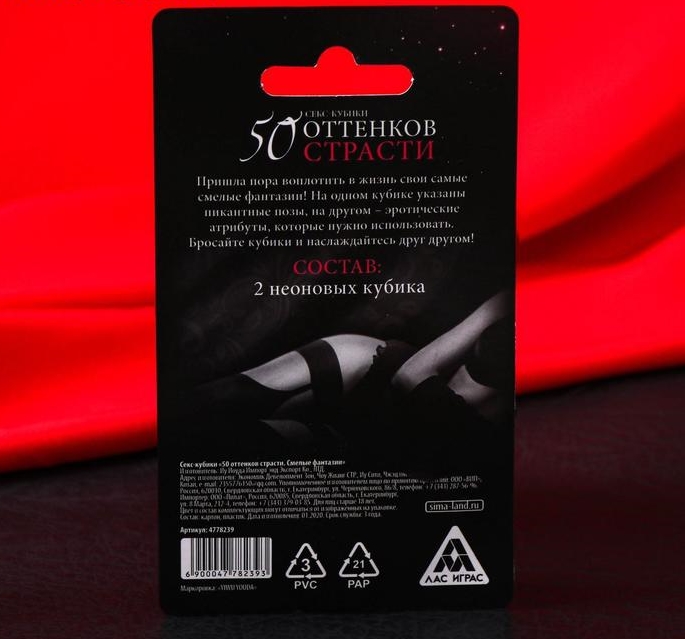 Здесь вас ждут 2 кубика - на одном из них указаны пикантные позы, а на другом — эротические атрибуты, которые нужно использовать.