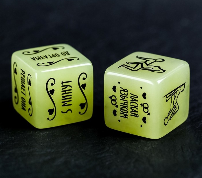 Один кубик подскажет, каким ласкам вы предадитесь этой ночью, а второй — как долго они продлятся.