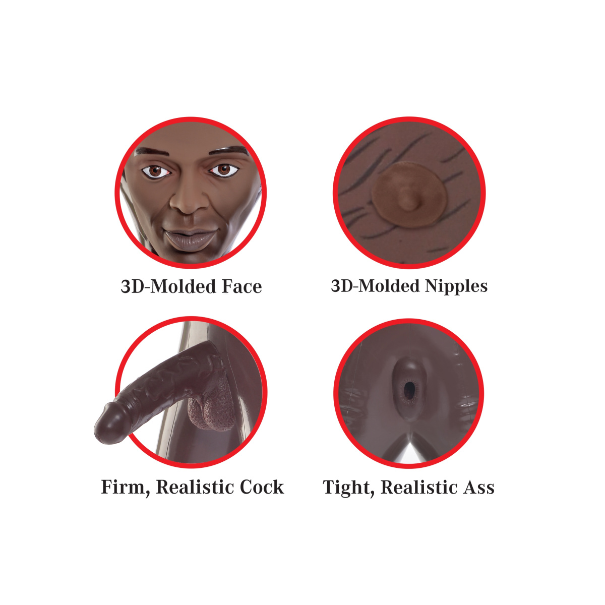 Мы предоставляем вам уникальную возможность порадовать себя не просто фрагментом тела, но целой куклой в виде негра с пухлыми губками, волосатой грудью и упругими ягодицами. Его мускулистые руки уже готовы принять вас в объятия, а упругий эрегированный член длинной в 18 см так и просится погрузиться во влажную мягкую вагину. Съемный мастурбатор дополнен отверстием ануса, а это значит, что кукла-негр понравится и мужчинам.
