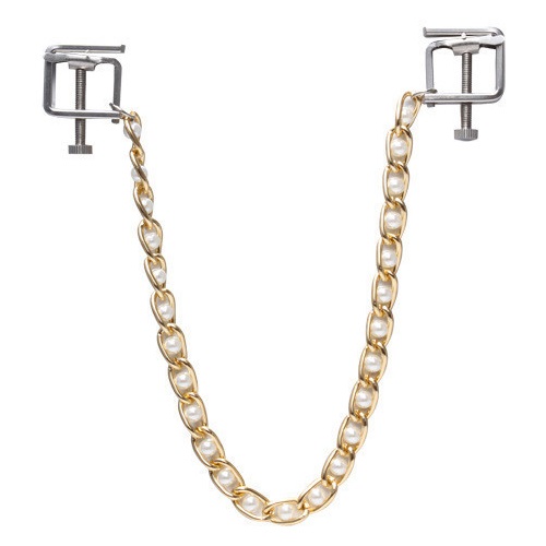 Украсьте свою грудь зажимами на соски в виде квадратиков, соединенных между собой цепочкой.