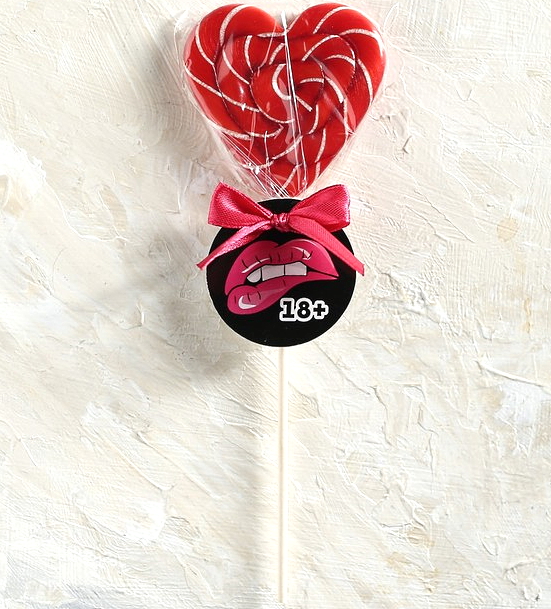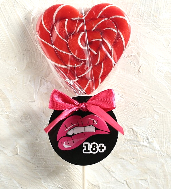 Леденцовая карамель на палочке в форме сердечка станет приятным дополнением подарка на любой из праздников!