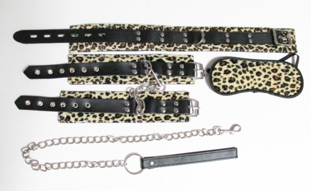 Роскошный набор в леопардовом окрасе, сделан из нежного вилюра. Такой материал не принесет неудобства для вашего партнера, тк не будет натирать или пережимать.