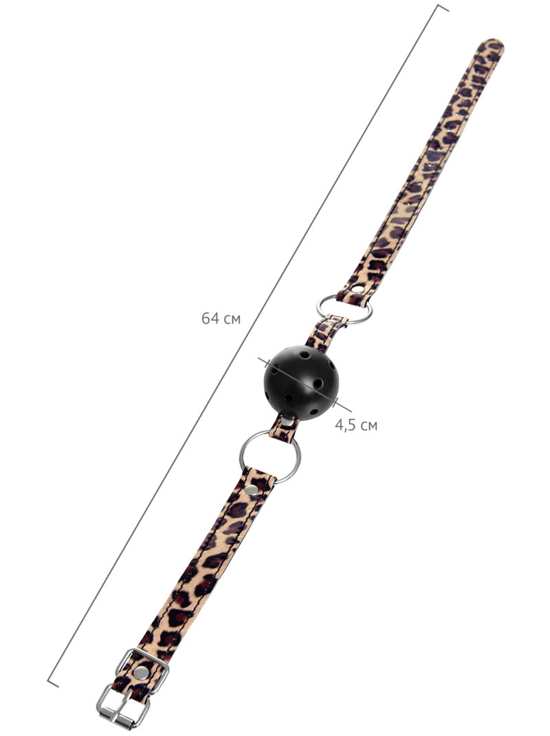 Кляп с черным пластиковым шариком и отверстиями для облегченного дыхания, застегивается на ремешок из искусственной кожи, что не позволит Вашему партнеру вытолкнуть шарик изо рта и издать лишних звуков.