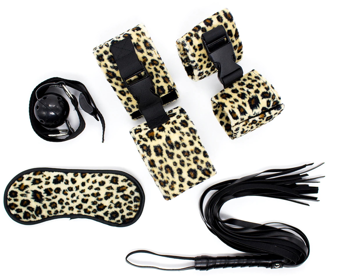 - плюшевые леопардовые наручники и поножи на липучках помогут приковать Вашего партнера