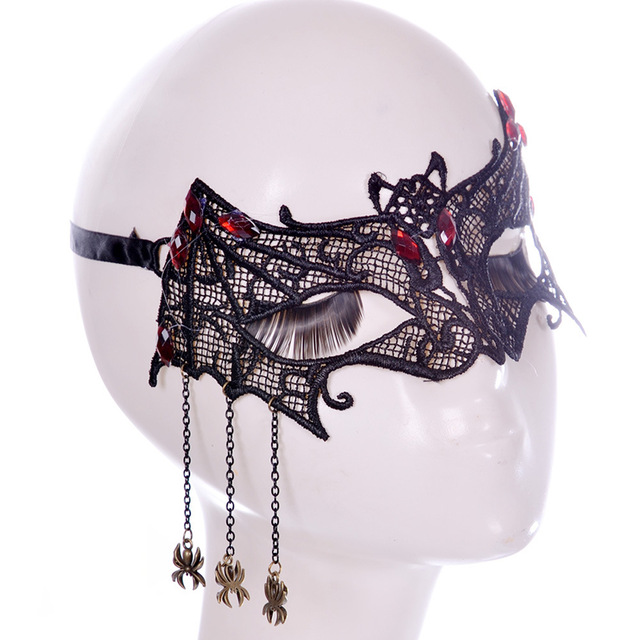 Маска выполнена в универсальном черном цвете из плотного ажурного кружева. Крепится на голову с помощью эластичной черной резинки.