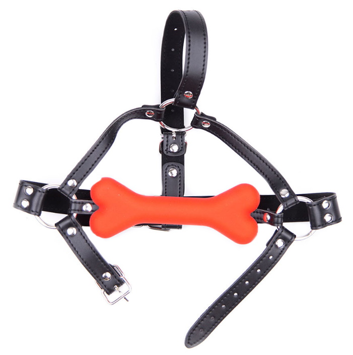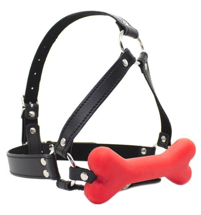 Размеры: ремни имеют регулируемый размер; длина кляпа 12 см, диаметр обхватываемой части косточки 2,2 см
