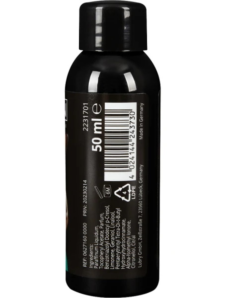 Состав: Paraffinum Liquidum, Tocopheryl Acetate, Parfum, Benzotriazolyl Dodecyl p-Cresol, Limonene, Geraniol, Linalool, Pentaerythrityl Tetra-Di-t-Butyl Hydroxyhydrocinnamate, Alpha-Isomethyl Ionone, Citronellol, Citral