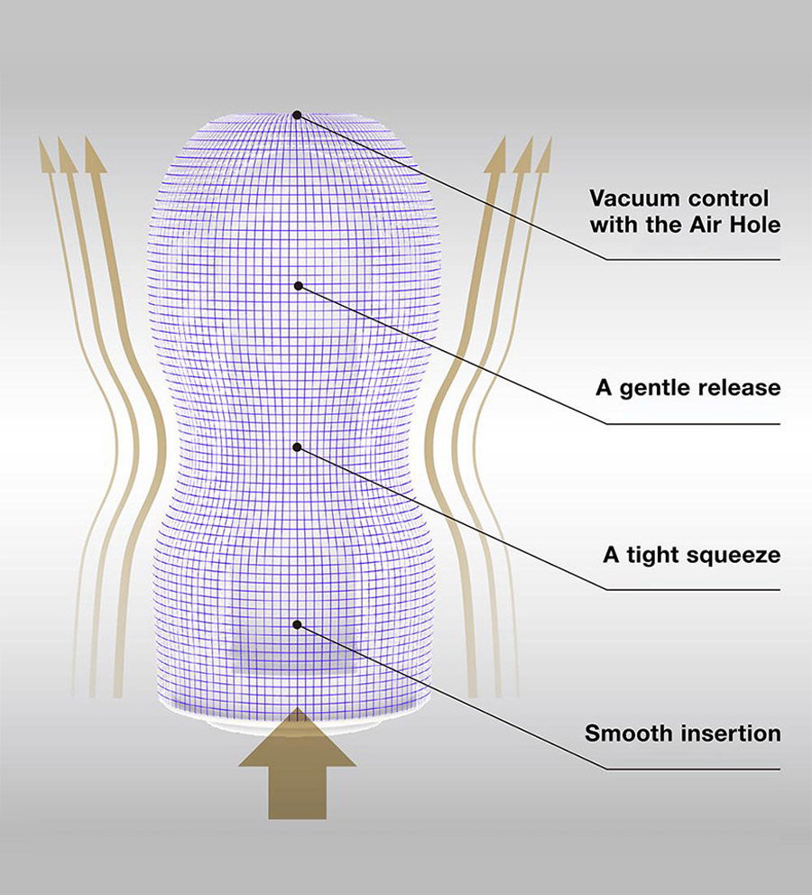 Конструкция Premium-серии изготовлена с добавлением специальной эластичной подушечки Smooth Pad для мягкого сопротивления при проникновении. Это не только обеспечивает дополнительную стимуляцию, но и слегка увеличивает силу вакуума, а также позволяет лубриканту распределяться самостоятельно после проникновения и дольше оставаться внутри для плавности движений. Серия предоставляет совершенно новый уровень удовольствия, воплощенного в классических моделях Tenga Cup.