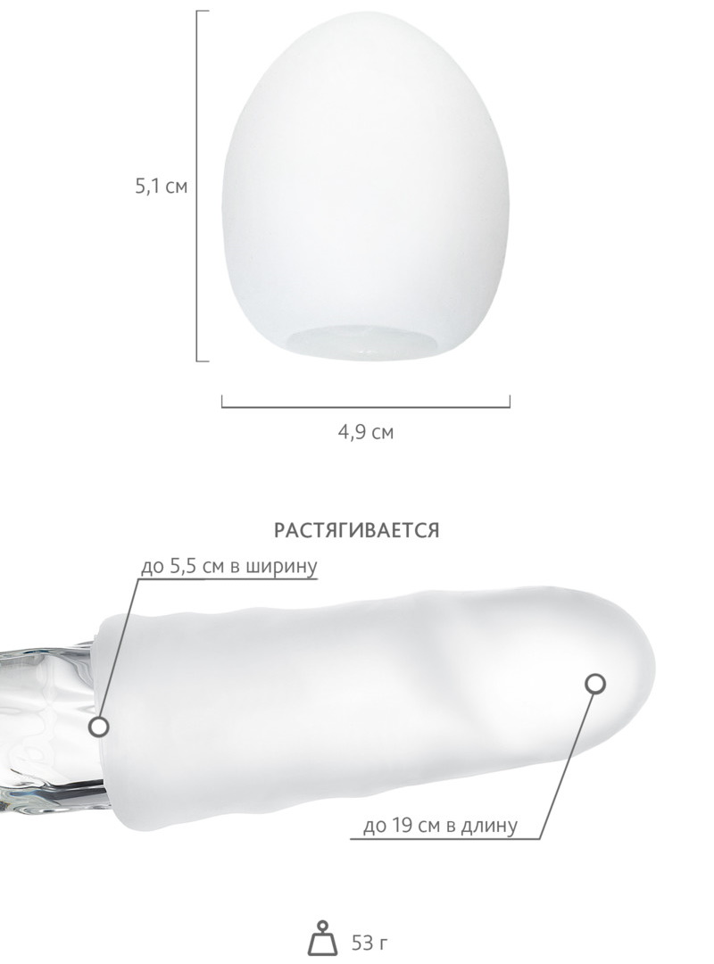 Эти яички прекрасно растягиваются на длину и принимают форму любого пениса. Совершайте рукой знакомые движения, получая дополнительное фантастическое удовольствие! Натяжение и внутренняя фактура позволяют Tenga Egg ласкать одновременно ствол и головку, а потом довести вас до самого глубокого и насыщенного оргазма. Tenga Egg также предлагает восхитительный бонус. Яичко можно вывернуть, одеть на ладонь и ласкать любые чувственные зоны мягким, нежным рельефом.