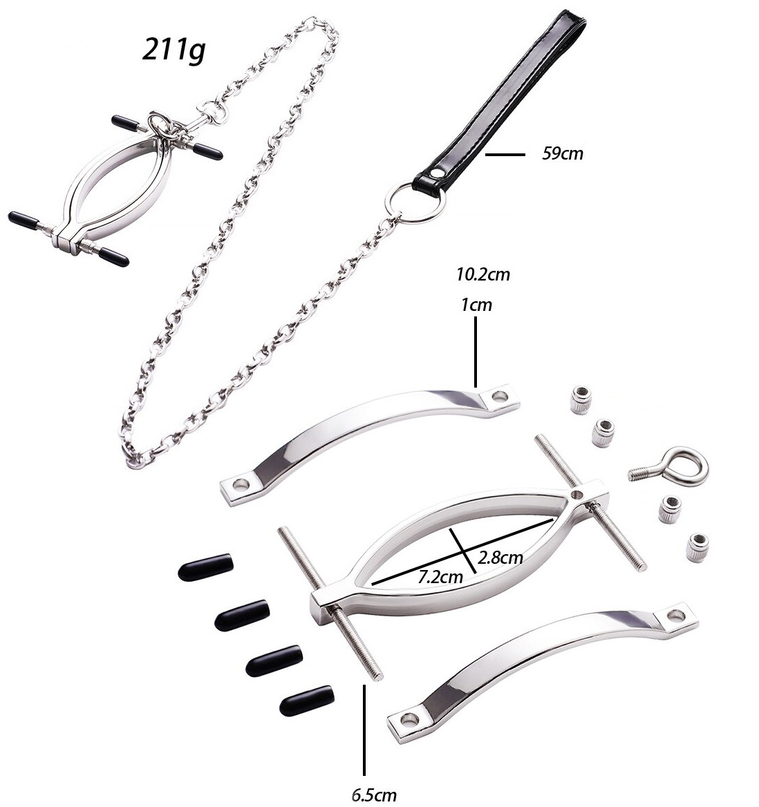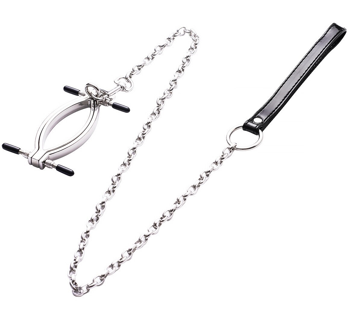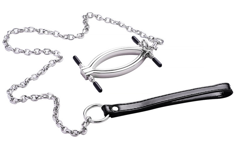 Во время игр Вы сможете руководить покорной рабыней - стоит лишь присоединить к зажиму цепь с поводком!