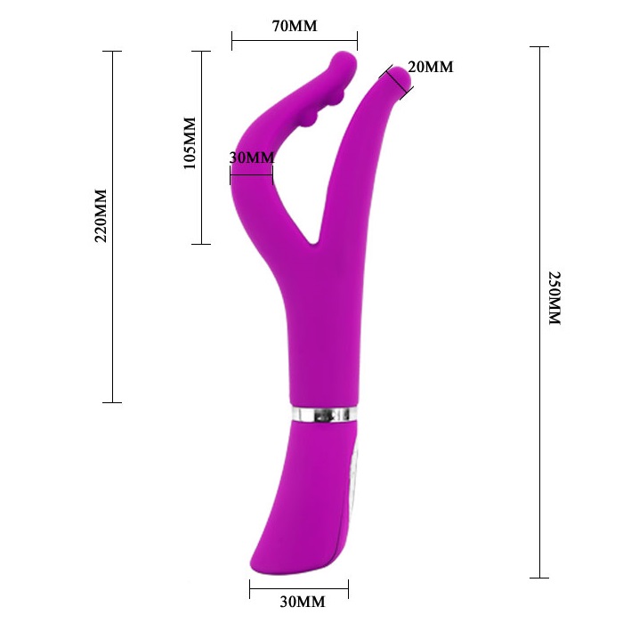 Особенность этого вибратора заключается в его изогнутых "щупиках", которые идеально подходят для единовременной стимуляции точек G и клитора! Так же, он сможет с легкостью обхватить клитор, благодаря мягким кончикам. Но и это не все!