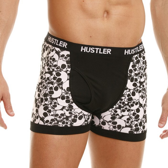 Дерзкие черно-белые боксеры от Hustler с эффектным принтом из черепов.