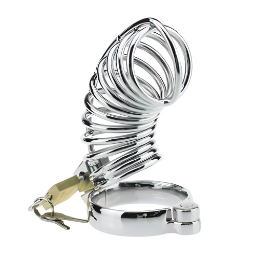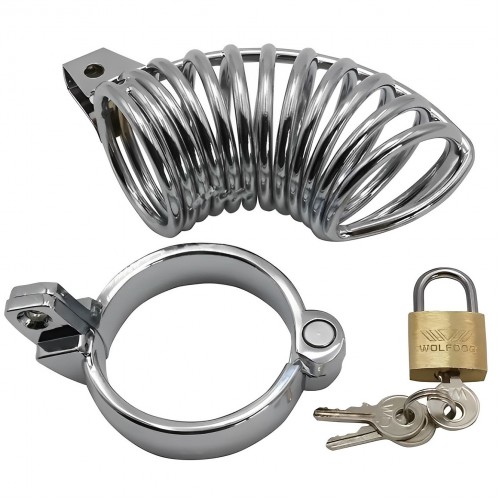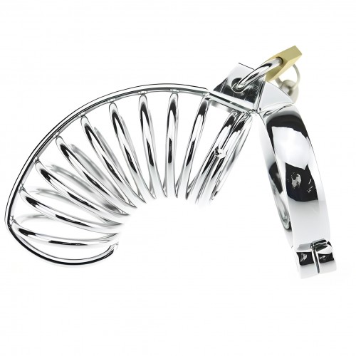 Устройство мужского целомудрия изготовлено из нержавеющей медицинской стали - безопасного материала, который не вызывает аллергии и дискомфорта. Размер: общая длина 13,5 см, длина корпуса 11,5 см, внутренняя длина корпуса 8,5 см, внутренний диаметр пояса 3,5 см, внутренний диаметр запорного кольца 4, см
