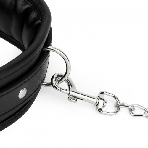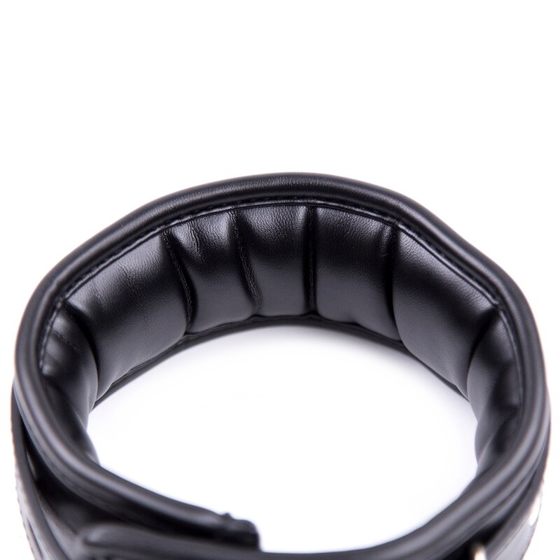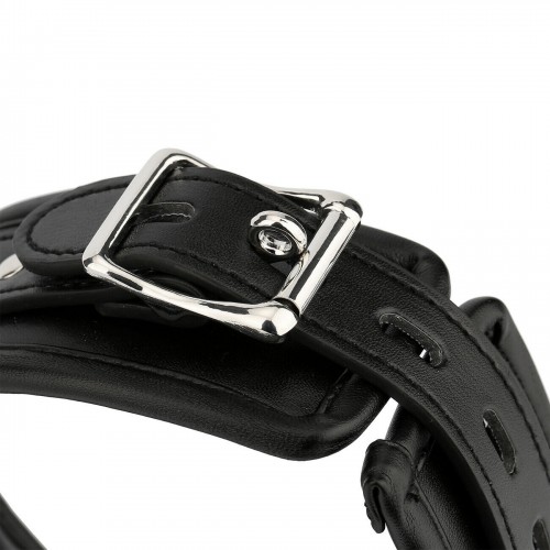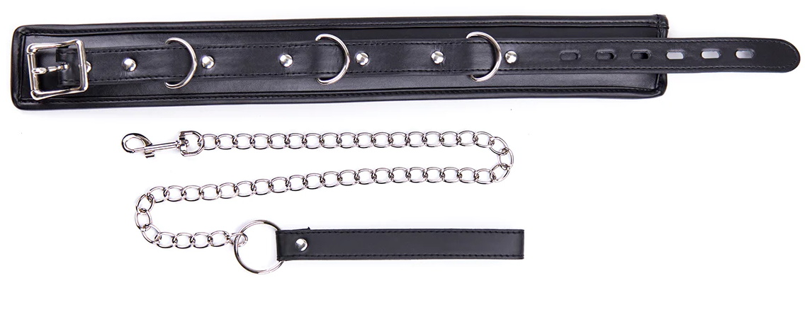 Металлическая фурнитура надежно фиксирует ремешок, а также позволяет отрегулировать размер. Поводок крепится к полукольцу на внешней стороне ошейника - это позволяет раздвинуть грани Ваших БДСМ игр!