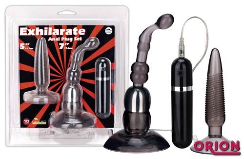 Коническая ребристая пробка (длиной 12 см, диаметр от 1,6 см до 2 см) и изогнутая вибровтулка с 10-ступенчатой вибрацией (длиной около 18,5 см, 1,8 см до 3,5 см).