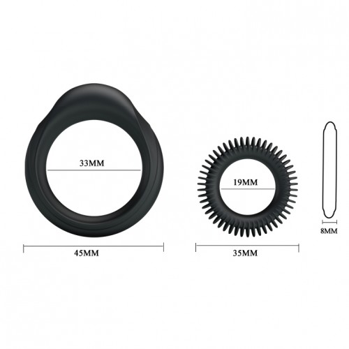 Вся прелесть такого набора в том, что Вы можете носить сразу два колечка: одно из которых может быть у основания пениса, а другое под мошонкой.
