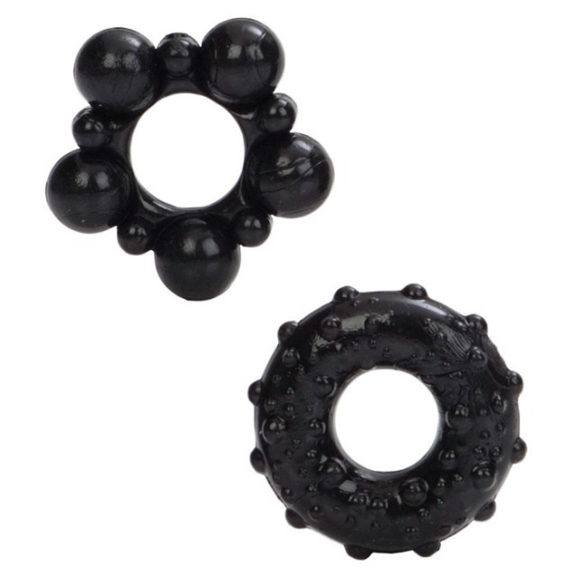 Диаметр каждого кольца составляет 2 см, а благодаря качественному тянущемуся материалу они способны растягиваться до больших размеров. Каждое кольцо имеет оригинальную и достаточно плотную структуру, обеспечивающую надежную крепкую поддержку и стимуляцию полового члена.