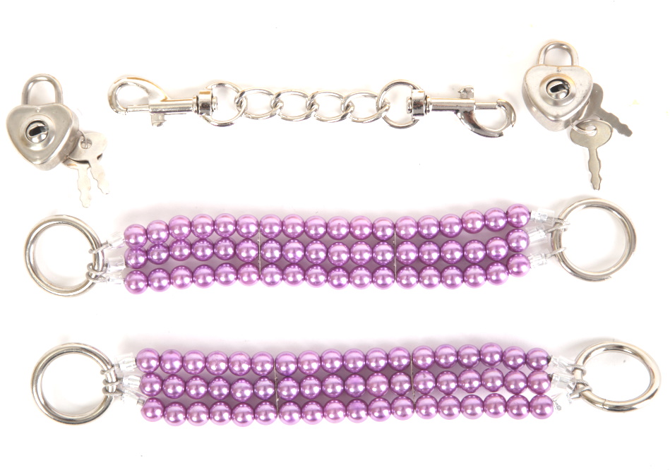 Красивые наручники из сиреневого жемчуга с замочками в виде сердца и четырьмя ключиками станут не только потрясающим аксессуаром, но и внесут разнообразие в вашу сексуальную жизнь.