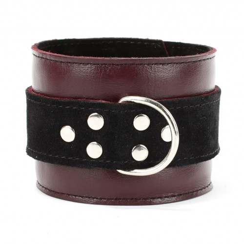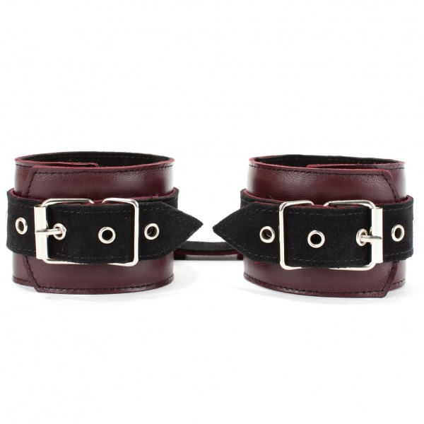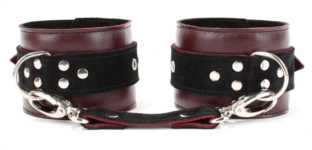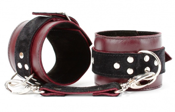 Наручники выполнены из натуральной кожи бордового цвета.