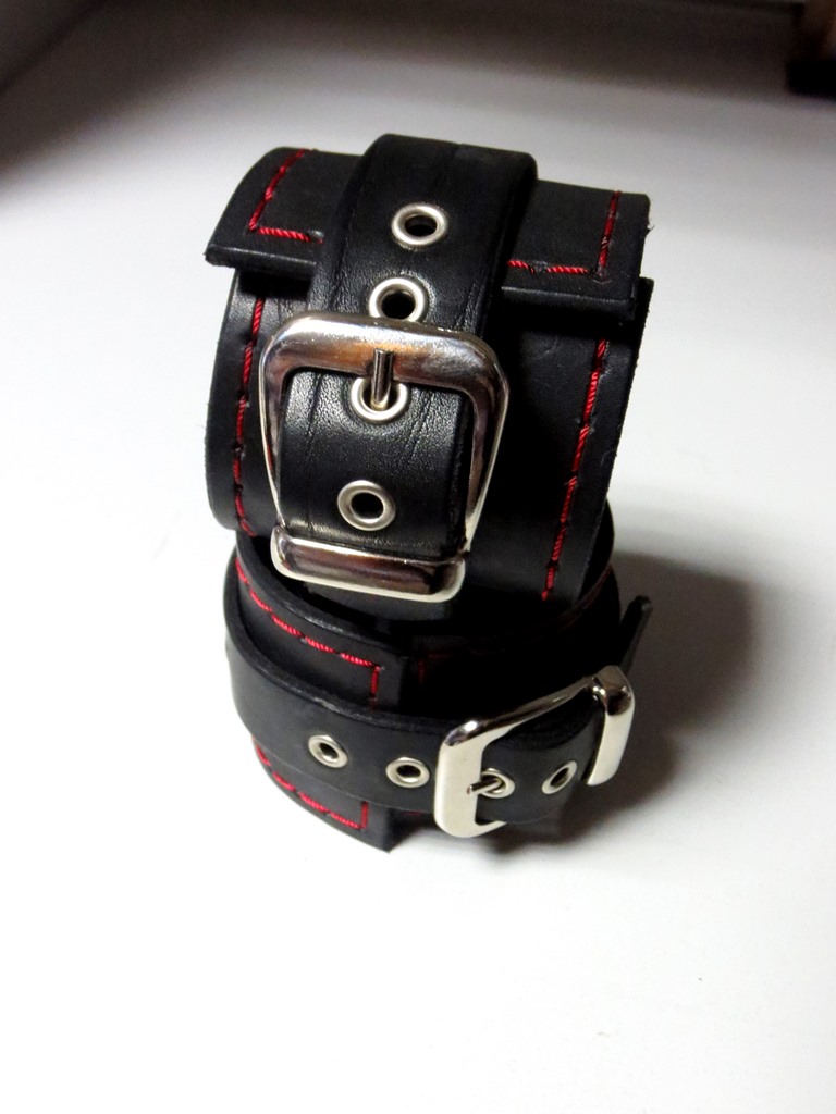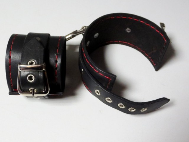 Широкие черные кожаные наручники с заклепками, созданные специально для прочной фиксации рук. В отличие от обычных металлических наручников, кожаные полностью исключают дискомфорт при использовании — неуместную боль и повреждения кожи Вашего партнера за счет мягкой внутренней подкладки и способности повторять естественные изгибы запястий.