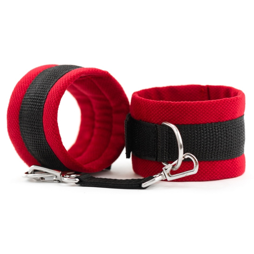Наручники выполнены из приятного на ощупь бархата с элементами серебристой фурнитуры и строп.