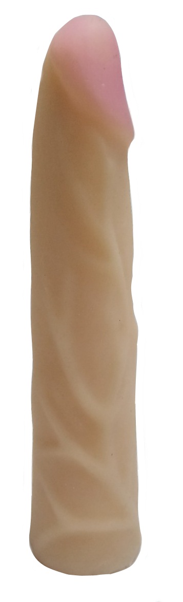 Имеет форму члена с ярко выраженной головкой, рельефный, выполненный из материала неоскин, не имеет швов.