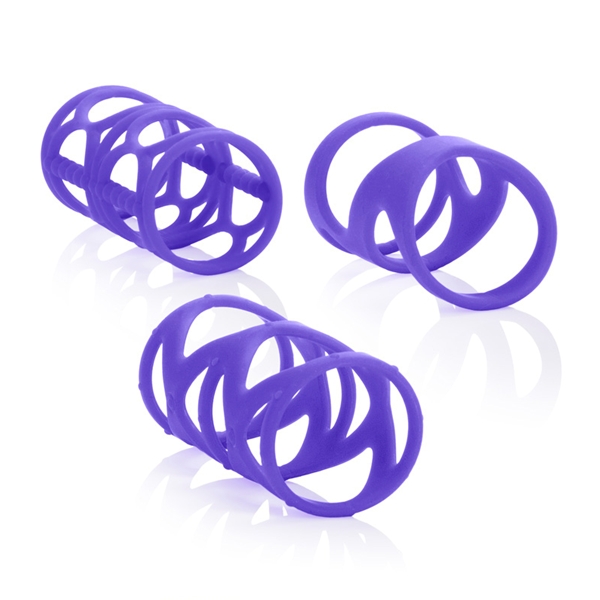 Комплект насадок для пениса из фиолетового силикона с разным рельефом. Насадка одевается на эрегированный пенис и своим рельефом просто сводит с ума обоих партнеров, добавляя новые ощущения при привычном сексе.