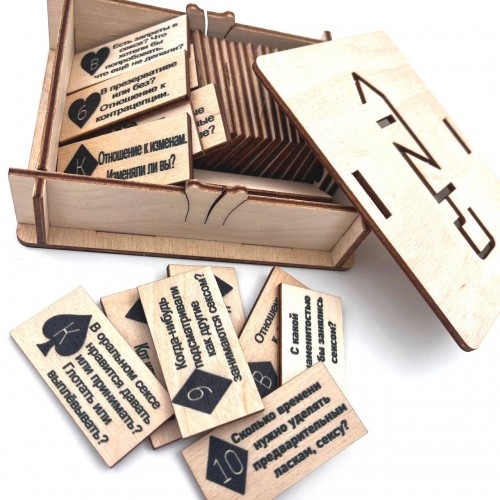 Ценность игры: "Деревянные секреты" не просто развлекут вашу компанию, но и помогут вам ближе узнать друг друга, внося элемент юмора и пикантности в общение. Эстетика древесины прекрасно дополняет атмосферу дружеской коммуникации.