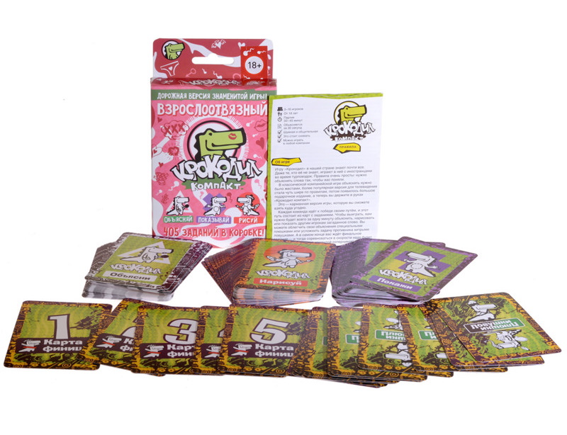 В комплекте 81 карта, 405 заданий, 12 карт плюшек-ловушек, 5 карт финиша и правила игры.