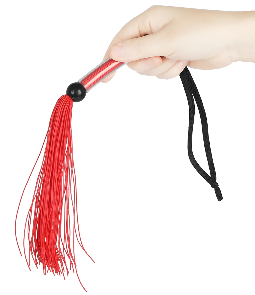 Удобная ручка позволяет крепко держать плеть в руках, а резиновые хвосты нежно обжигают даже при слабом ударе.