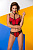 Комплект состоит из топика и трусиков, выполненных из нежной ткани красного цвета в сочетании с мягкой черной сеточкой.