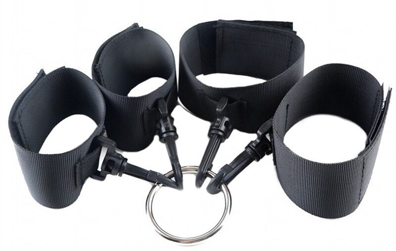 Универсальный фиксатор, состоящий из наручников и поножей, позволяет обездвижить вашего партнера в абсолютно любой позе!